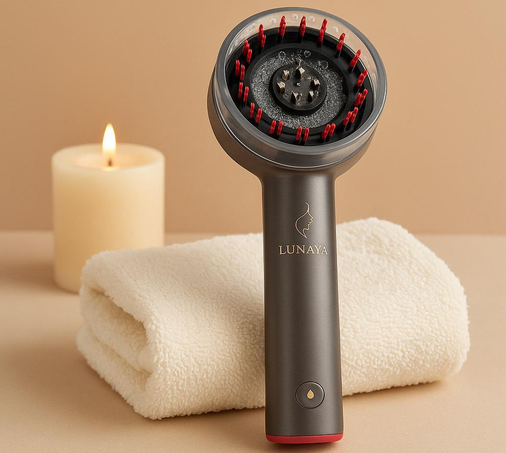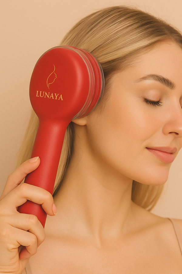 Con Lunaya, este gesto se convierte en un instante para ti. Nuestro nuevo cepillo masajeador combina innovación y beneficios: estimula la circulación, potencia tu aceite nutritivo y promueve el crecimiento natural del cabello. Entre comodidad y eficacia, Lunaya transformó tu rutina capilar en un verdadero ritual de cuidado, para un cabello radiante y revitalizado, y un momento de relajación a solas.