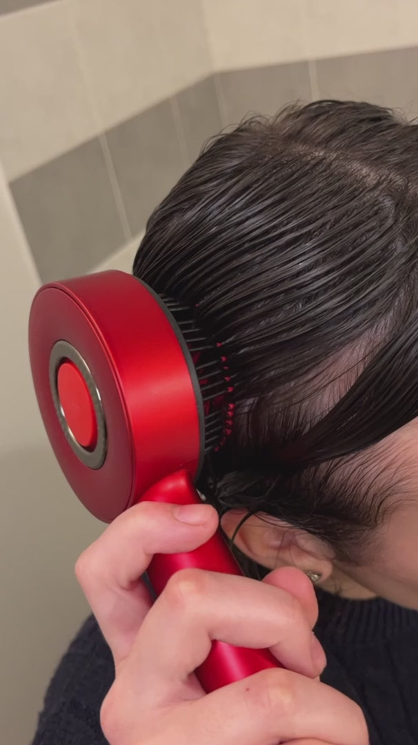 Encienda el aparato y colóquelo suavemente sobre el cuero cabbelludo seco o húmedo. Realice lovimientos lentos y circulares de 5 a 10 minutos, zona por zona.